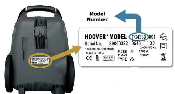 Naziv modela vašeg usisavača se nalazi na kontrolnoj markici usisavača, najčešće na njegovom donjem dijelu (Pogledajte sliku).